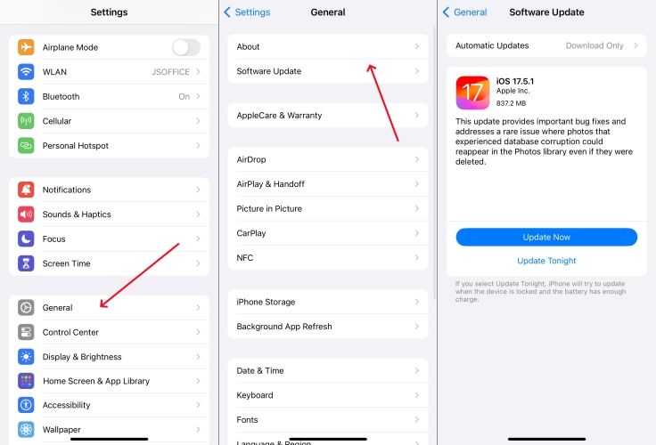 iOS系統過時的iPhone經常會出現無法加載照片、無法加載視頻等問題。舊的iOS版本已經無法滿足您當前的需求。因此,如果是這種情況,解決方案是在“設置”中更新您的 iPhone。步驟如下。