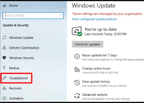 - 這更新與安全選項應該可用,之後您可以單擊排除故障。