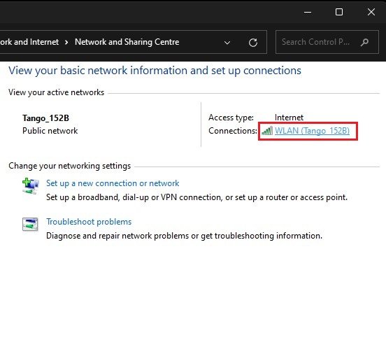 接下來,單擊網絡與共享中心,然後在此處選擇您的連接。