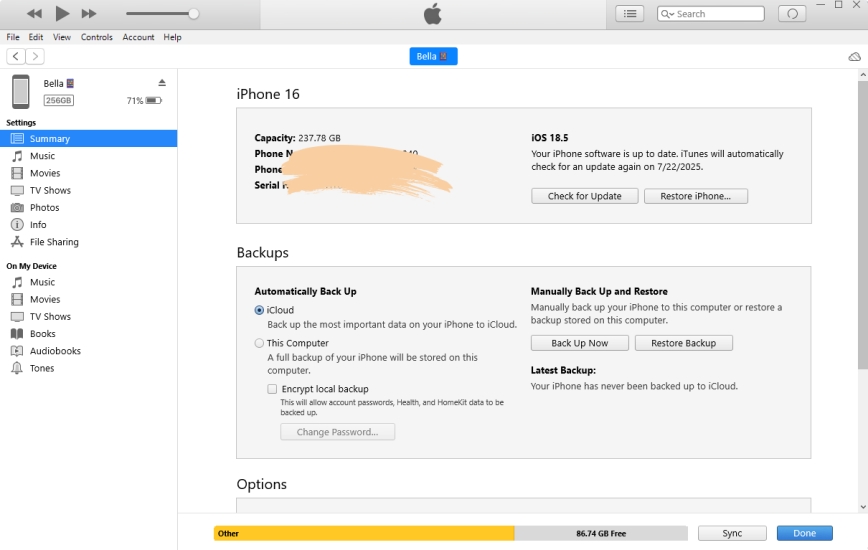 通過 iTunes 恢復是另一種方法,可以幫助您解決 iPhone 上的所有深層問題。並且還會導致數據丟失。您可以先將 iPhone 備份到電腦,然後通過 iTunes 恢復您的 iPhone。