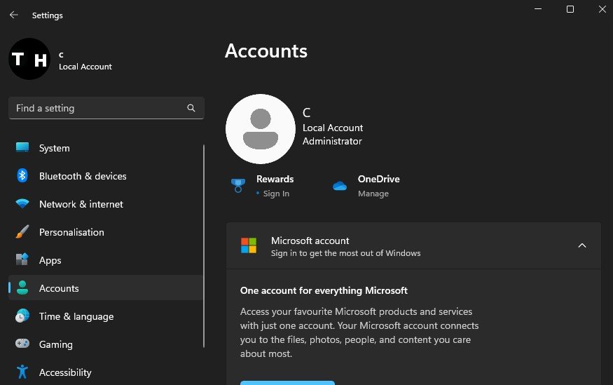 前往您的賬戶設定.在這裡,您應該確保您使用的是具有管理員權限的帳戶。