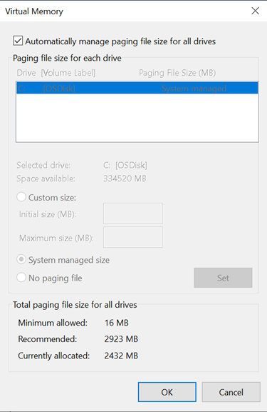 Windows 10 用戶可以嘗試構建交換文件來啟動它,因此,您的“開始”菜單搜索將再次開始運行。該過程將包括重建頁面文件。這是因為交換文件直接依賴於頁面文件。不建議完全禁用頁面文件,但您可以快速將其轉移到另一個驅動器以成功重新啟動它。或者,如果您希望它位於原始驅動器上,那麼您可以禁用它並重新啟動您的電腦。重新啟動後,您可以再次啟用它。