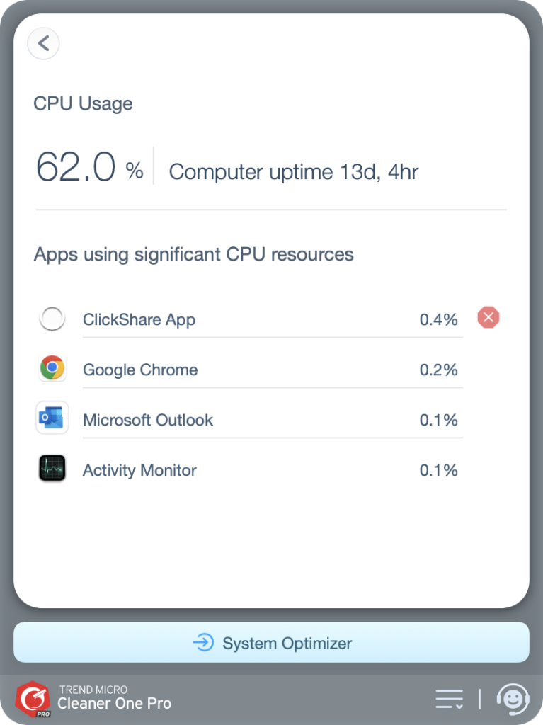 如果您的 Mac 上安裝了 Cleaner One Pro,則只需一鍵單擊即可關閉無響應的應用程序。
