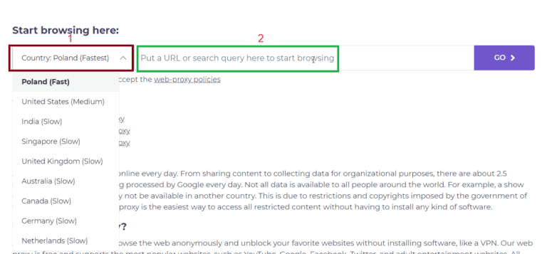 Web 代理服務器維護在在線網站上,您可以在其中選擇要瀏覽其他網站的代理服務器/位置。