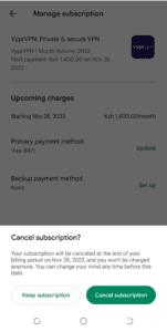 - 將彈出一條通知,確認您的訂閱將在計費周期結束時取消。輕敲 ”取消訂閱”。