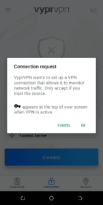 - VyprVPN 將發送連接請求。輕敲好的。