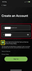 - 輸入電子郵件和密碼以創建帳戶。檢查服務條款框並單擊“報名”。