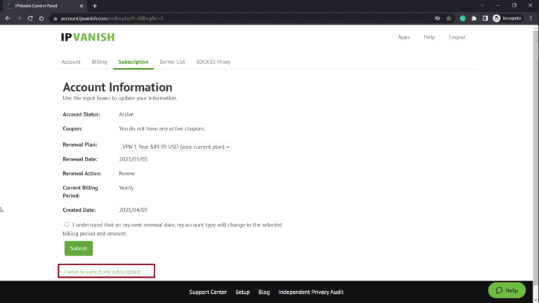 您必須通過您的官方 PrivateVPN 帳戶取消 30 天免費試用。方法如下: