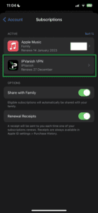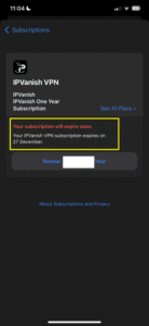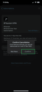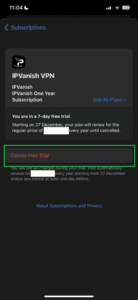 - 選擇 ”IPVanish VPN” 來自您的活躍訂閱。