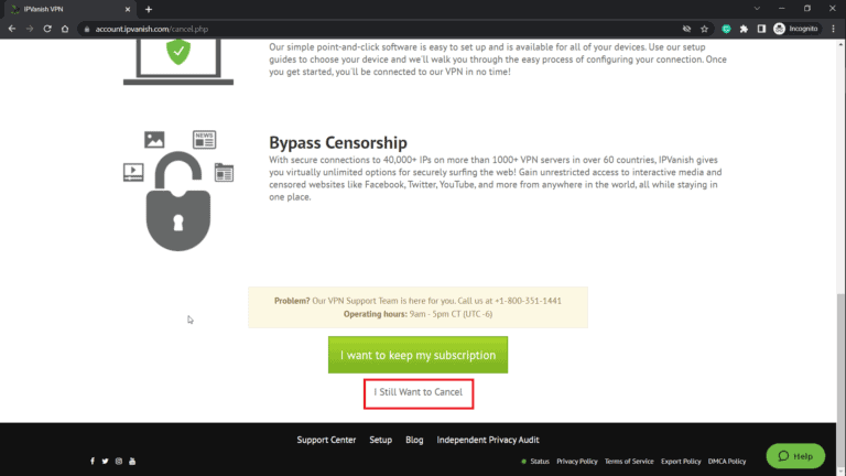 - 滾動到頁面底部,然後單擊“我仍想取消”。