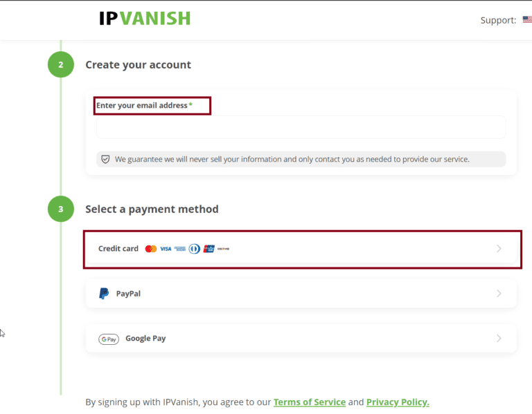 - 輸入您的電子郵件地址並選擇首選付款方式。在本例中我將使用信用卡付款。