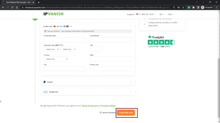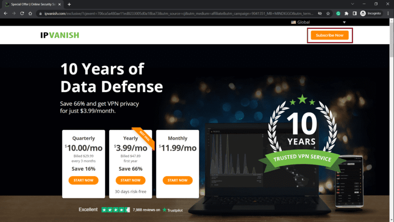 - 前往IPVanish網站並點擊“立即訂閱”。