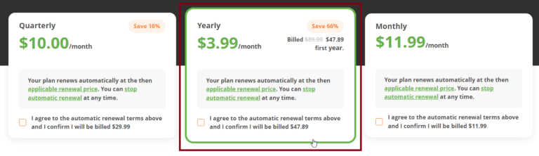 然而,與其他提供商不同的是,它並不為所有計劃提供 30 天免費試用,僅提供年度選項。