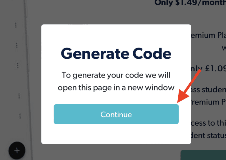 - 系統會要求您生成代碼;點擊 ”繼續”。