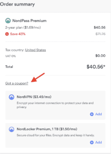 您不能將學生折扣與 NordPass 優惠券代碼結合起來以獲得更優惠的折扣。相反,您可以添加學生折扣或優惠券/促銷代碼來享受其中之一。