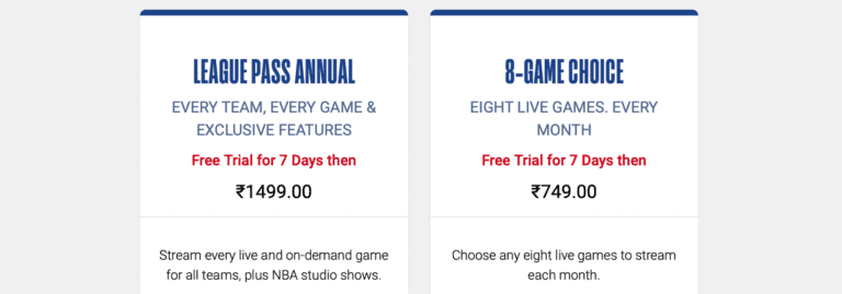然後,我們有一個NBA League Pass 版本可用的僅在印度。