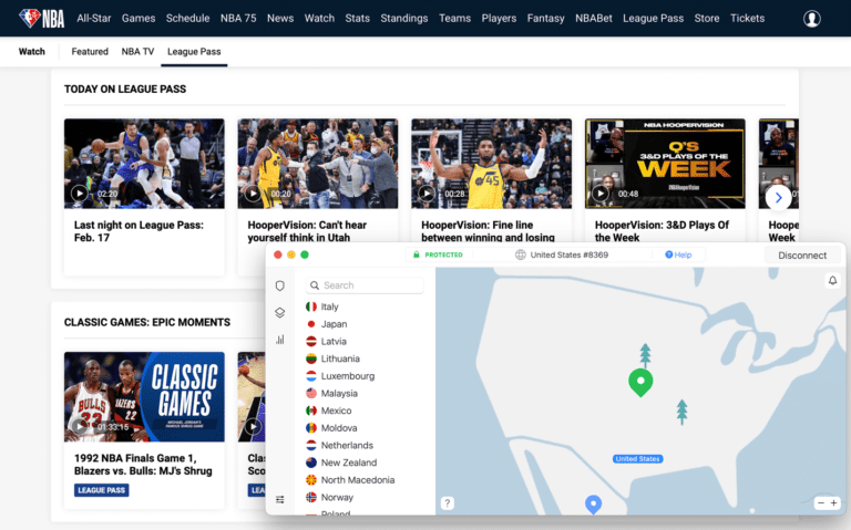 使用 VPN 繞過 NBA League Pass 封鎖非常簡單。