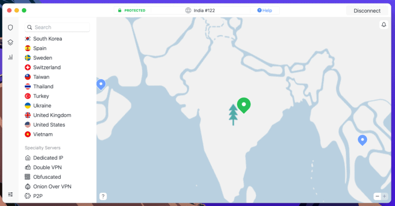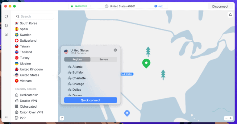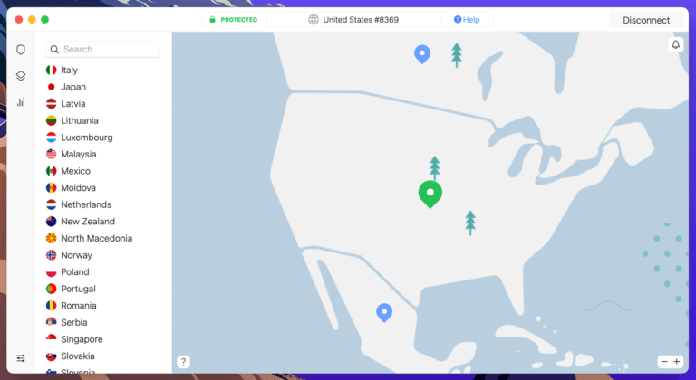 一旦你連接, NordVPN 會說“受保護”在頂部。