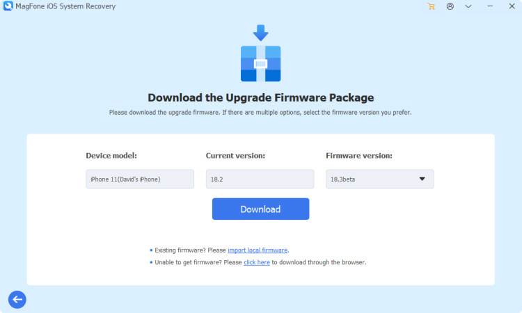 MagFone iOS System Recovery 等一些第三方工具提供對 Apple Developer Beta 軟件的訪問。這些工具允許直接下載 iOS 開發人員測試版配置文件。如果您沒有開發者帳戶或安裝 iOS 26 Developer Beta 時遇到困難,請考慮 MagFone iOS 系統恢復。以下是如何使用 MagFone 軟件下載 iOS 26 Developer Beta。