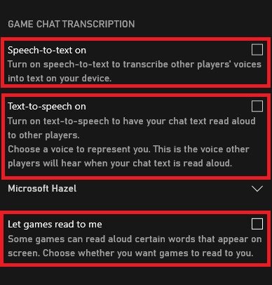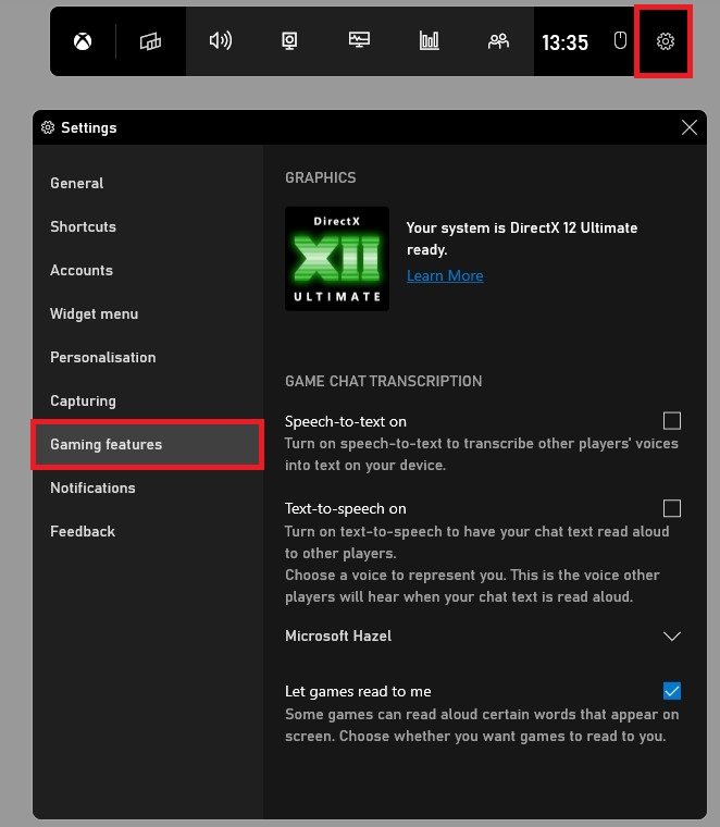Xbox 遊戲欄設置 > 遊戲功能 > 語音轉文本打開