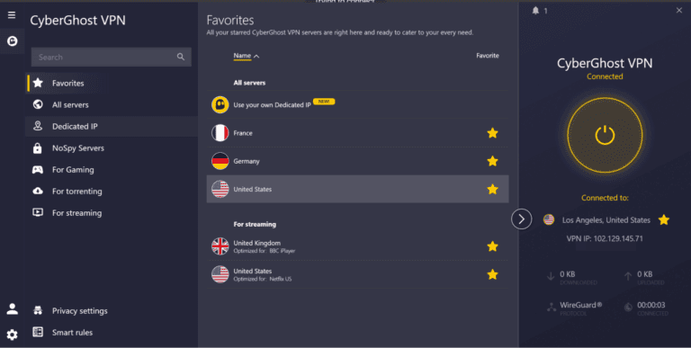 - 衝浪、溪流和保護您的遊戲會話與 CyberGhost。例如,我連接到加拿大溫哥華,在 Netflix 上播放《肖申克的救贖》。
