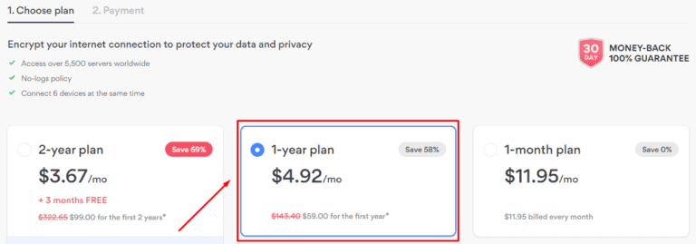 因此,如果您想在短期內訂閱NordVPN而不花很多時間,那麼您就做出了正確的選擇一年計劃。