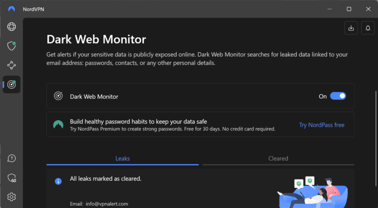巴里茲喜歡的另一件事,你也可以,是NordVPN 的暗網監控器。