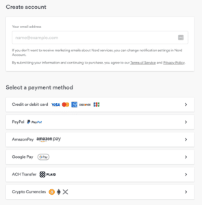 - 通過以下方式創建您的帳戶填寫您的電子郵件地址和選擇您首選的付款方式。