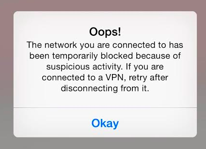 當 Snapchat 發出 IP 地址禁令時,它會限制特定 IP 地址對其服務的訪問。如果平台檢測到源自該地址的可疑或濫用行為,則可能會發生此類禁令。受 IP 禁令影響的用戶可能很難從常用網絡訪問 Snapchat,需要切換到其他網絡或使用 VPN 才能重新獲得訪問權限。最壞的情況是,如果一個帳戶被禁止,則與該 IP 地址關聯的所有帳戶也可能面臨限制。您將收到一個彈出窗口,顯示“哎呀!由於可疑活動,您連接的網絡已被暫時阻止。如果您連接到 VPN,請在斷開連接後重試。”