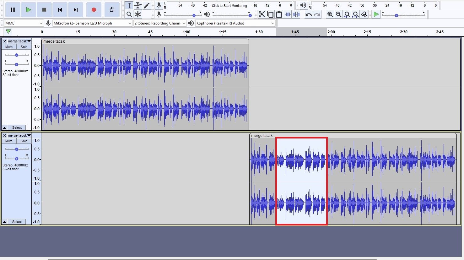 如何在 Audacity 中插入和合併曲目
