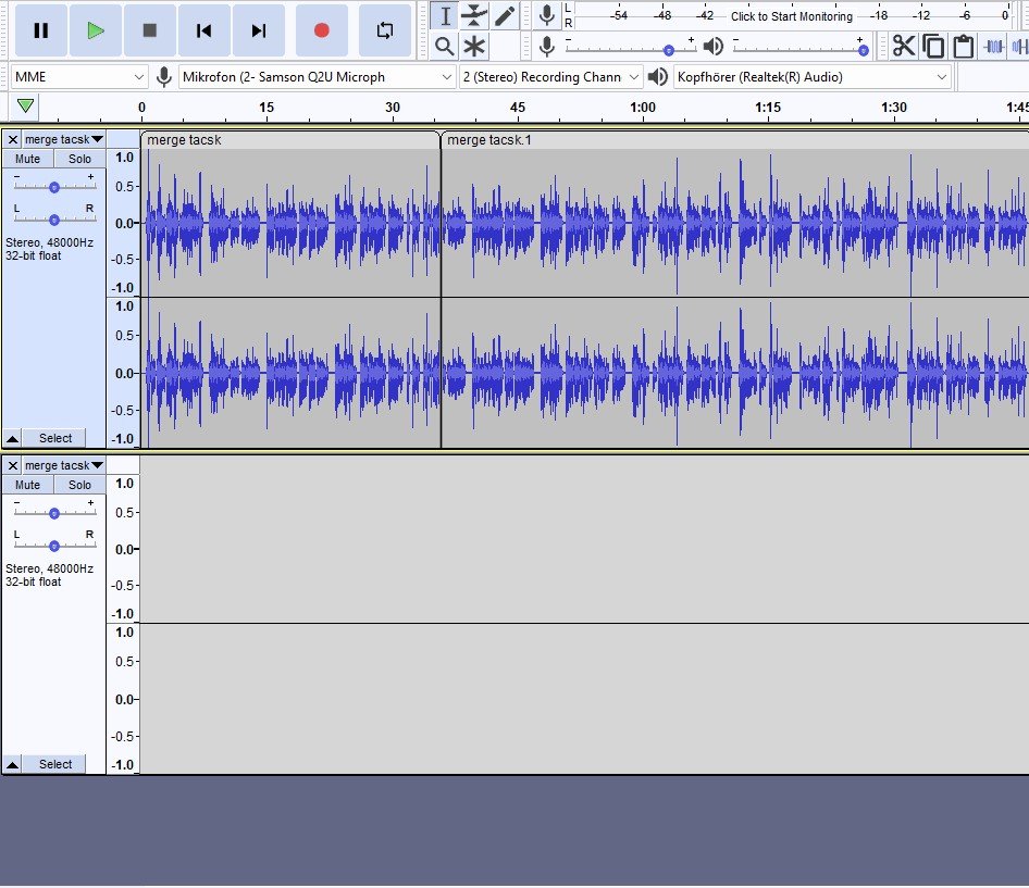 例如,如果您希望合併這兩個軌道,您可以使用 CTRL + X 快捷鍵剪切您喜歡的部分或整個軌道,然後使用 CTRL + C 將其粘貼到另一個軌道中。