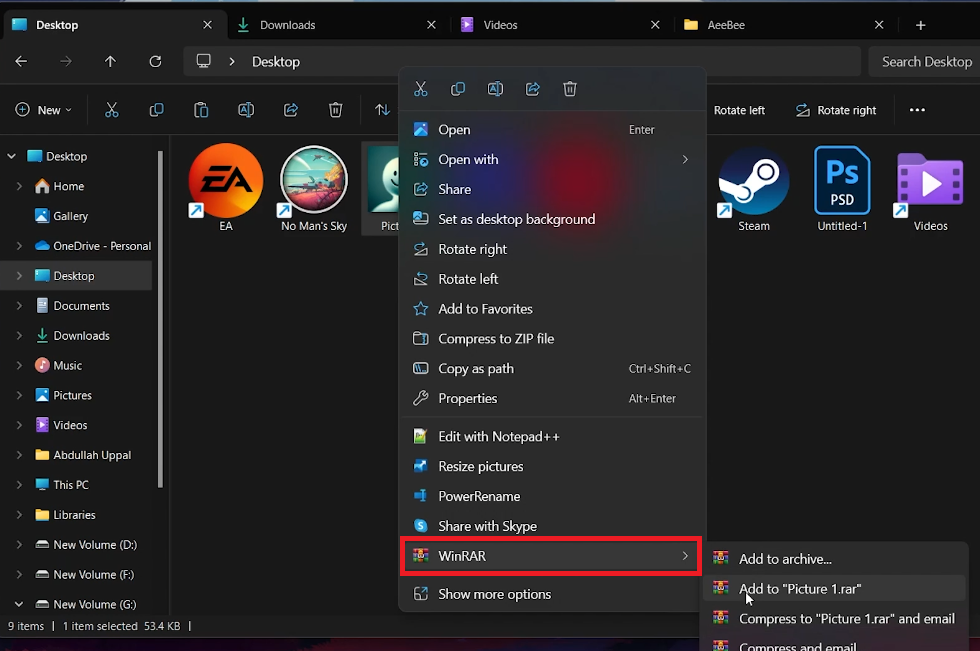 現在您的計算機上已經安裝了 WinRAR,讓我們學習如何使用它。找到要壓縮或另存為特殊 WinRAR 文件的文件或文件夾,然後右鍵單擊它。將出現一個菜單,選擇 WinRAR 選項,然後選擇“添加到壓縮文件”。