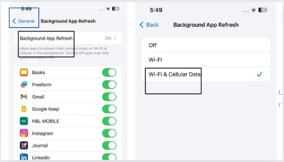 步驟一:前往設置>常規>後台應用程序新鮮>設置它至“Wifi 和蜂窩數據”