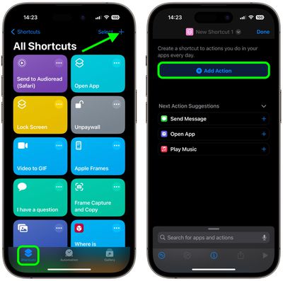 - 打開快捷方式應用程序,然後點擊+屏幕右上角的圖標。