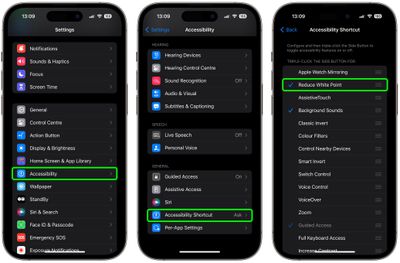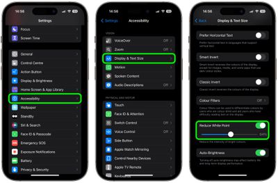 如果白點仍然太亮(或太暗),您可以手動調整:在“設置”中,轉至輔助功能 ➝ 顯示和文字大小,然後向下滾動並打開旁邊的開關減少白點。