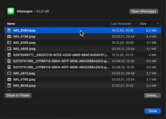 單擊您的“i”圖標留言,並按大小對此列表進行排序,以找到較大的、不需要的文件。繼續刪除不再需要的所有內容。如果您想保留大文件,但仍希望釋放存儲空間,那麼您可以使用 USB 記憶棒或其他外部存儲設備,或者使用雲服務,例如 iCloud 或 Google Drive。