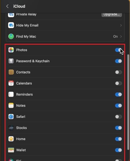 返回 iCloud 設置,您可以啟用或禁用某些應用程序在 iCloud 存儲中備份。照片和視頻因佔用大量存儲空間而臭名昭著,尤其是在使用 iPhone 拍攝大量照片並將其連接到 iCloud 時。