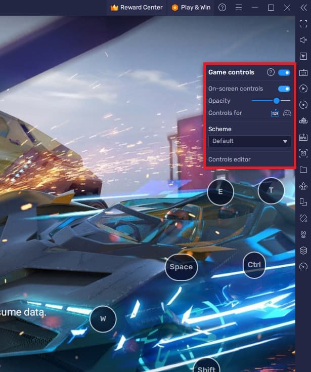 要自定義 Ace Racer 的鍵盤控件,請單擊 BlueStacks 窗口右側的鍵盤圖標。打開或關閉“屏幕控制”選項可幫助您了解在玩 Ace Racer 時要使用的相應鍵盤或控制器按鍵。