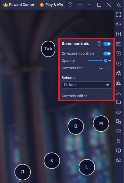 在遊戲中,單擊右側 BlueStacks 菜單欄中的鍵盤圖標。這將允許您啟用和禁用屏幕控制選項。這將幫助您找出在 PC 或 Mac 上玩 Dragon Raja 的鍵盤按鍵。