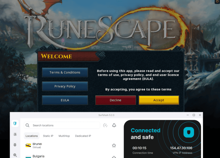 RuneScape 並不正式支持在其平台上使用 Surfshark VPN,但您不會被禁止用於為遊戲設置 VPN。