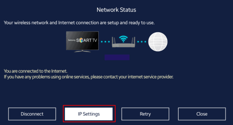 - 電視完成連接檢查後,選擇IP設置