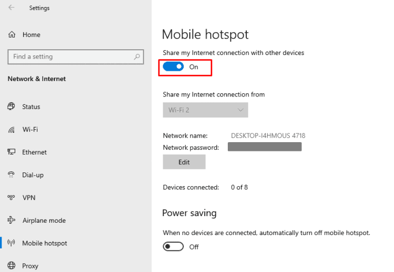 - 打開“下的下拉菜單家庭網絡連接”並選擇您之前創建的移動熱點。
