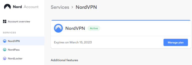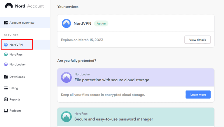 要排除這種情況,請登錄您的 NordVPN 並確認您的訂閱狀態顯示為“積極的”。
