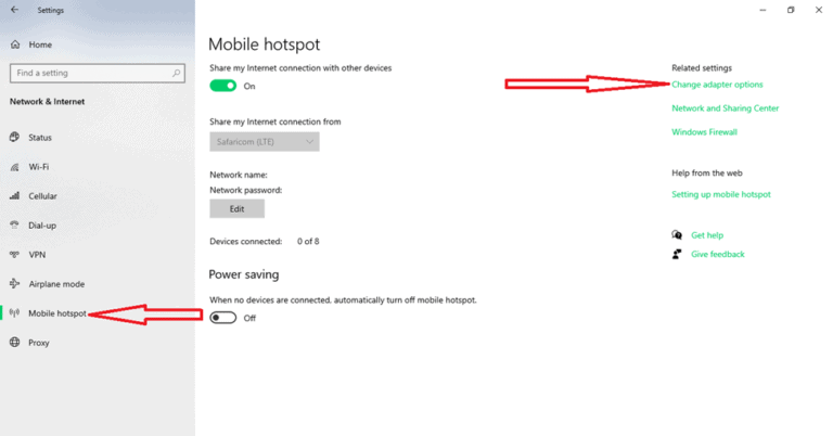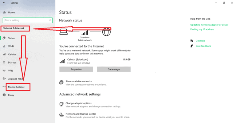 - 打開 ”網絡與互聯網” 在您的電腦上並選擇“移動熱點”。