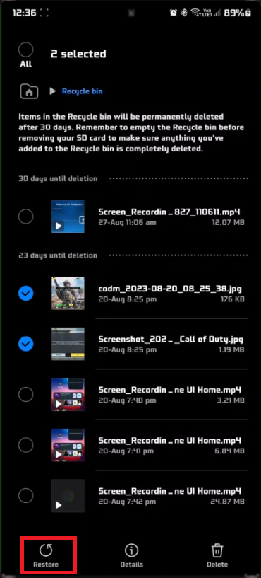 是的,圖庫和文件管理器都有單獨的回收站。您可以從任一位置檢索照片,具體取決於照片的刪除位置。