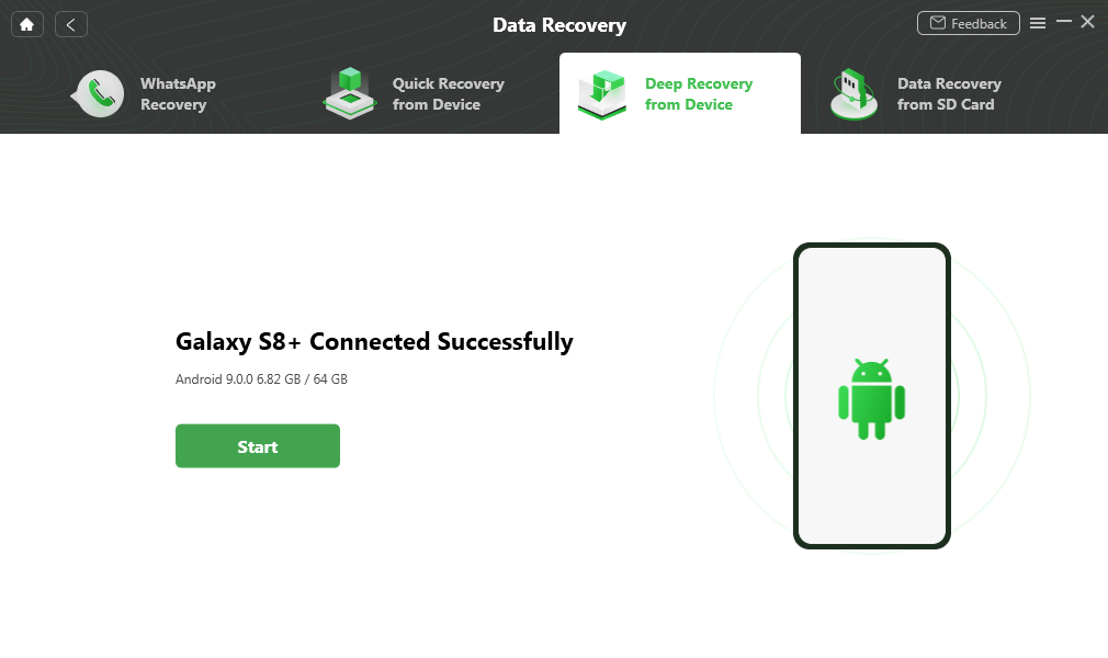 下載 DroidKit 並在計算機上運行。使用優質 USB 數據線將您的設備連接到計算機,然後選擇 Deep從設備恢復。