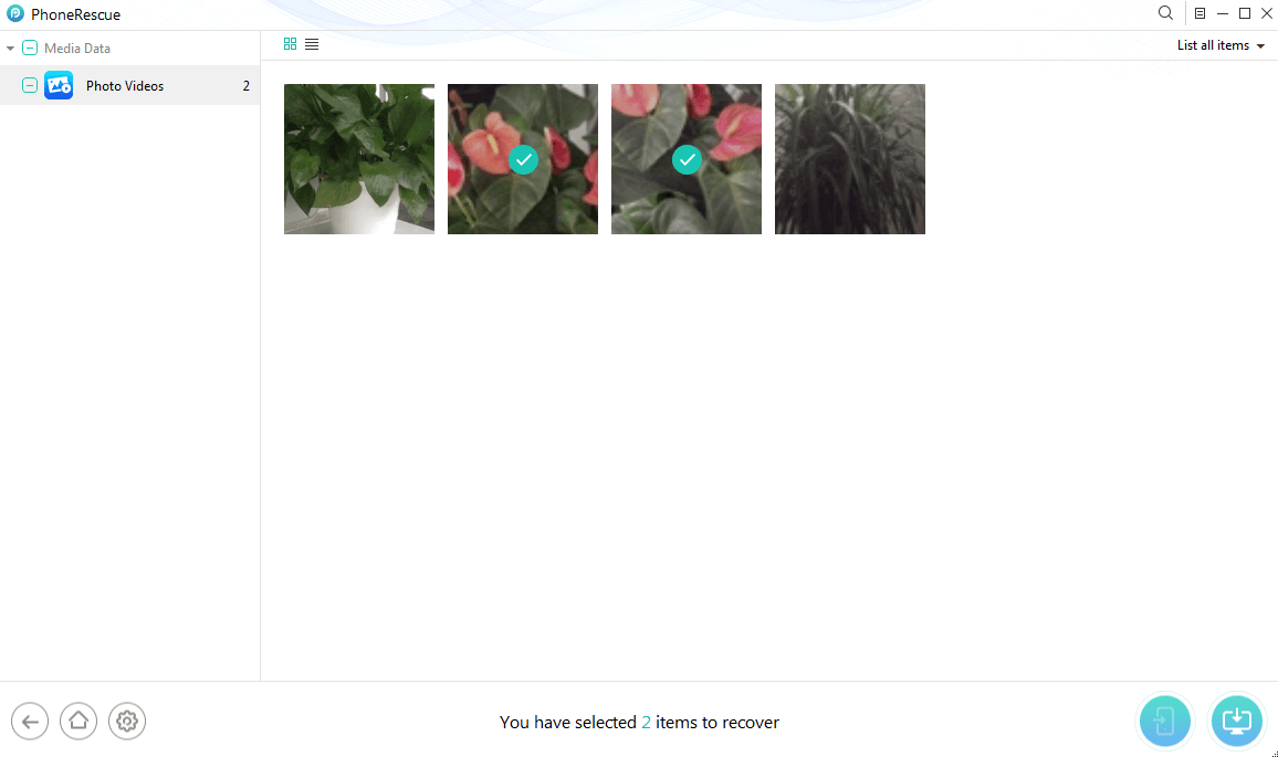 iOS 版 PhoneRescue 將顯示所有視頻,包括丟失的視頻。選擇要從 iPhone 恢復的視頻,單擊“到計算機”按鈕進行恢復。