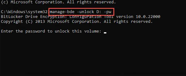 輸入密碼後,我們可以運行另一個命令來刪除 BitLocker。