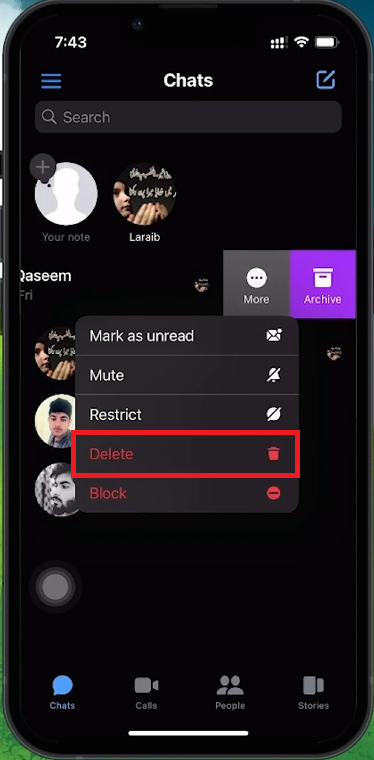 要刪除秘密對話,請在聊天上向左滑動,點擊三個點打開菜單,選擇“刪除”,然後確認操作。此過程將從您的 Messenger 中永久刪除加密聊天。