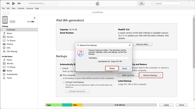 如果您曾經將 iPad 與電腦同步過,則可以嘗試將所有數據和設置從電腦恢復到 iPad。